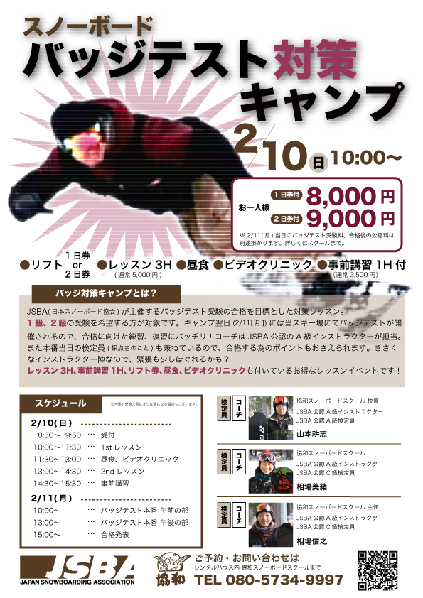①通常レッスン(初めてスノーボードをされる方、初級者の方)