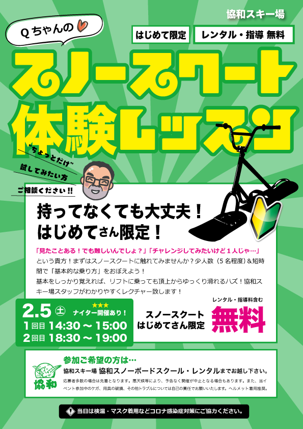 ▶️受付開始時間にスキー学校窓口に来場することを強く推奨致します。
